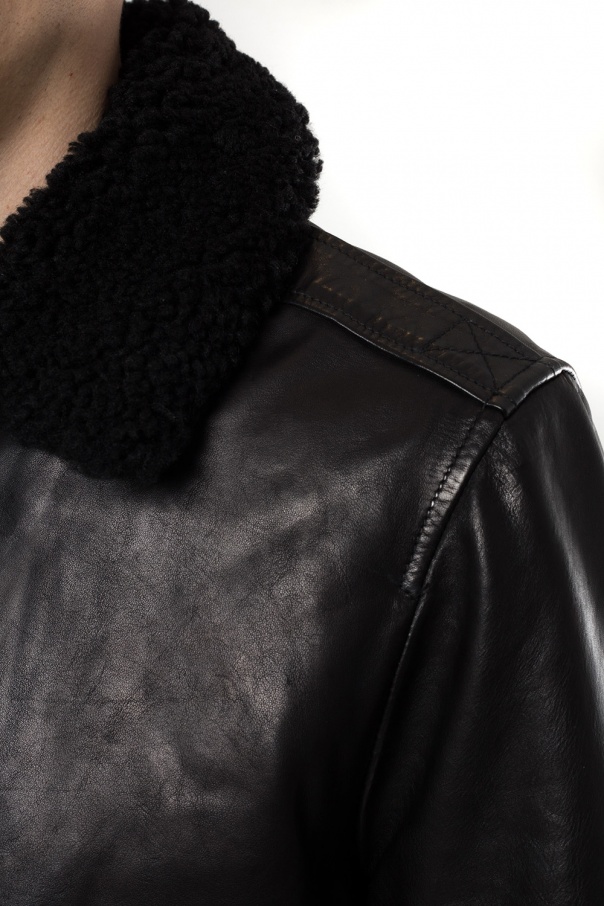 Black ‘Phoenix' jacket. Made of sheepskin. Two-way zip closure. Two zip pockets and two slip pockets on the front. Two inside pockets. Elasticated bottom and cuffs.