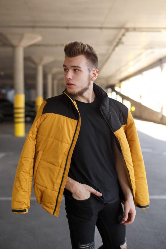 9982 Україна Матеріал європейська високоякісна щільна плащівка. Наповнювач Силікон Манжети - гумка. 2 зовнішніх кишені на блискавці і 1 внутрішній на змійці. Якісна фурнітура і ідеальний крій! Чоловіча демісезонна куртка ".Vidlik M -1" Желто-черная