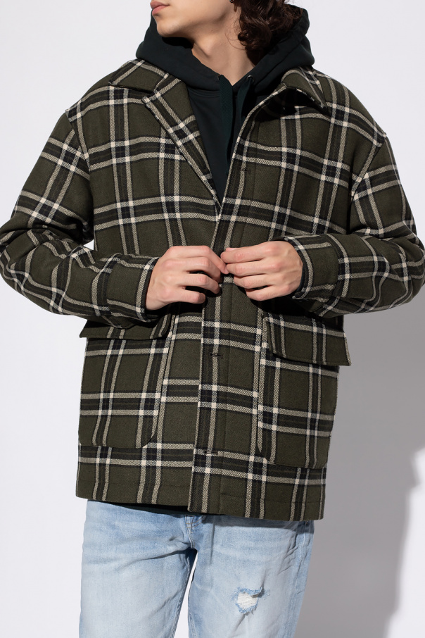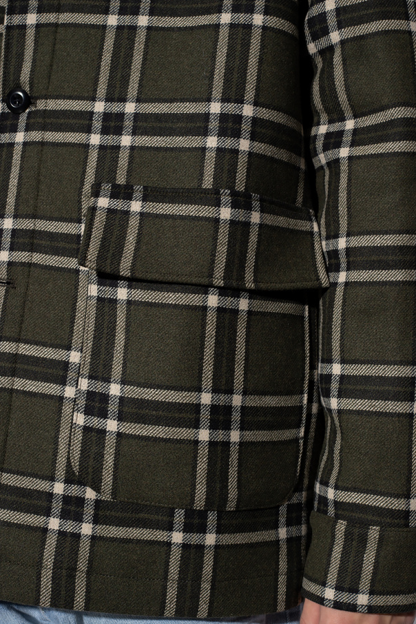 Green, cream and black shirt from Samsoe Samsoe. Fastened with buttons, this garment is decorated with a check pattern and has two buttoned flap pockets and long sleeves with button cuffs.