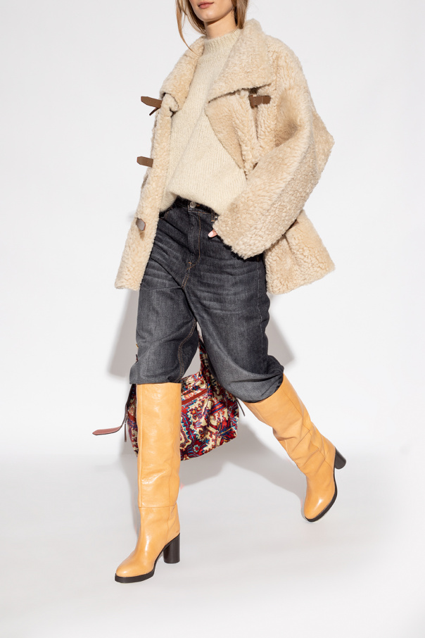 Light brown ‘Lelia’ heeled knee-high boots from Isabel Marant. Made of calf leather with a vintage effect, this slip-on pair features a round toe and dark brown leather sole.