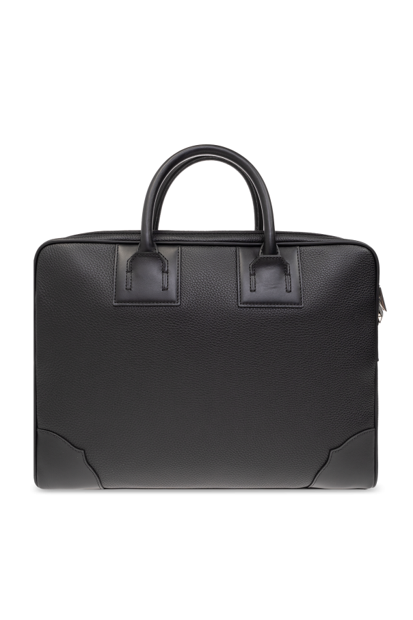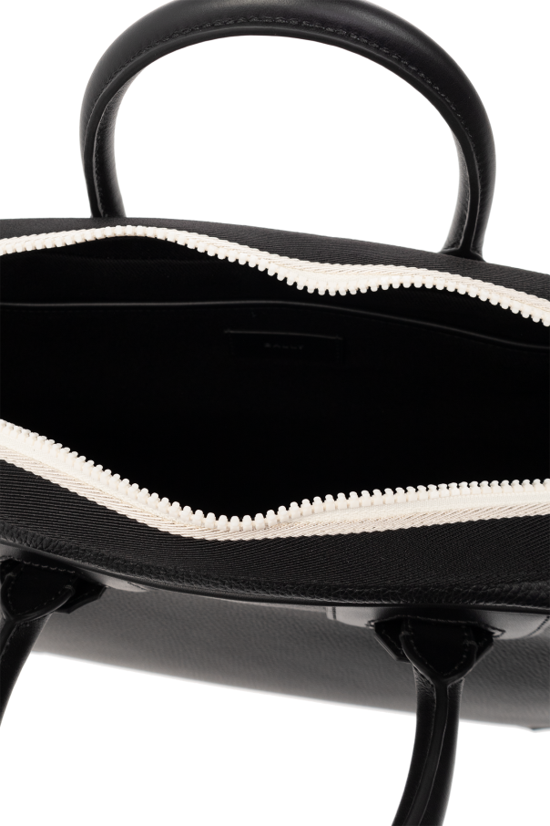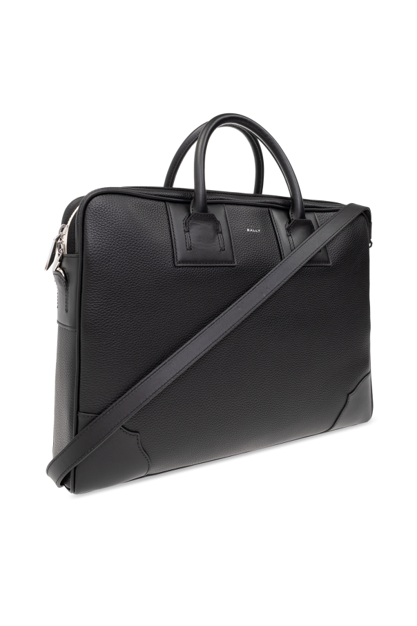 Black ‘Bord Brief’ briefcase from Bally. Made from leather, this design fastens with a cream two-way zip and showcases a silver-tone logo on the front. It is complete with a detachable and adjustable shoulder strap, two handles, silver-tone metal hardware and one internal compartment with three slip pockets and one zip pocket.