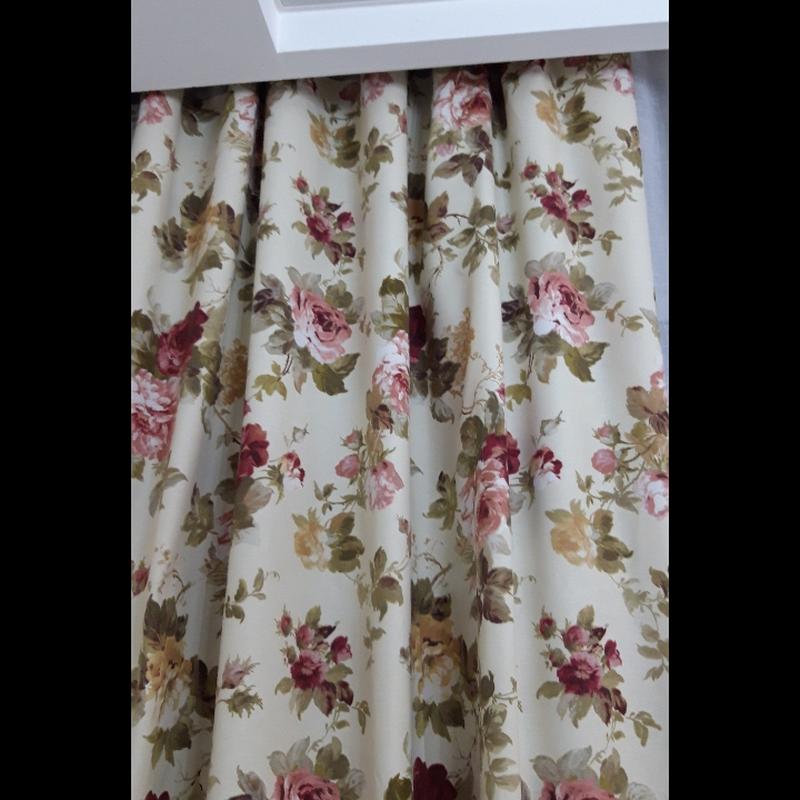Комплект из двух штор в размере 2м 50 см х 1 м 50 см на тесьме с широким подворотом краёв и низа. Исключительное качество. За счет хорошей плотности ткани шторы держат красивую складку.