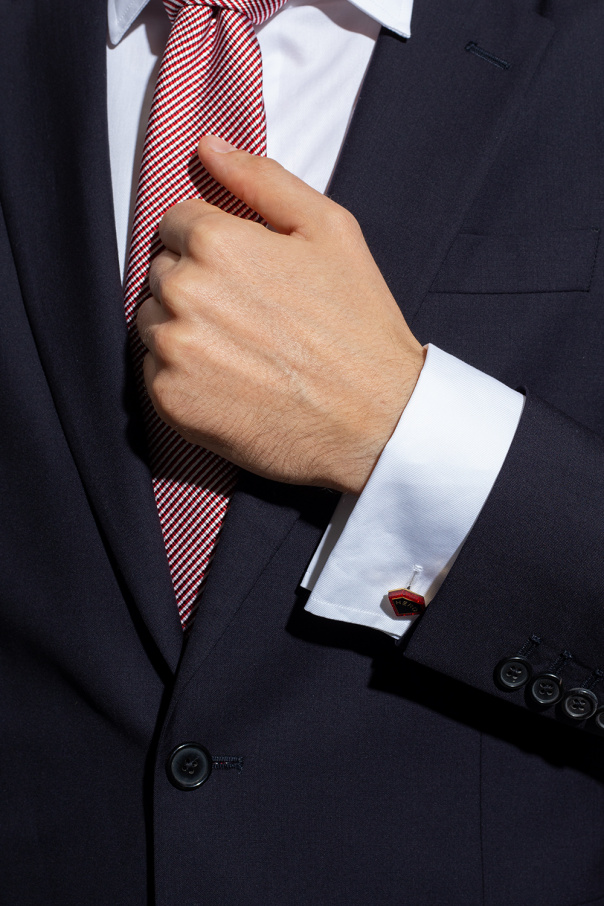 Silver-tone cufflinks from Paul Smith embellished with a gold-tone, black and red glittery application.