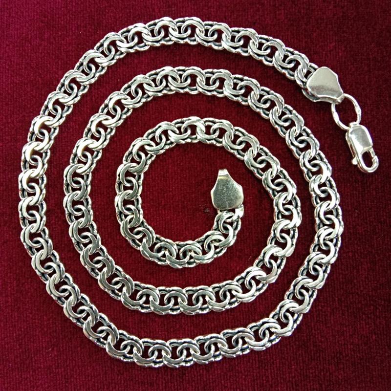 Серебряная цепочка плетение плоский бисмарк с чернением ширина 7 мм