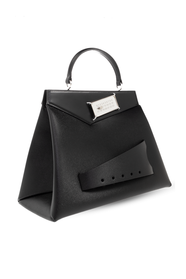 Black ‘Snatched’ shoulder bag from Maison Margiela. Made of leather, this design secures with a distinctive fastener and showcases a logo-engraved application on the front, two handles (one is perforated), a detachable and adjustable strap, silver-tone metal hardware and one internal compartment with a slip pocket.