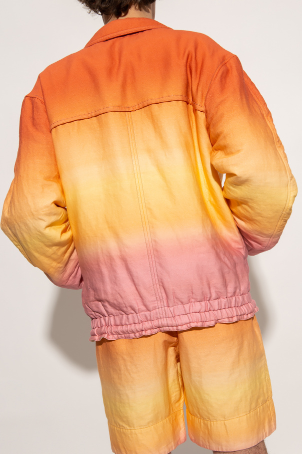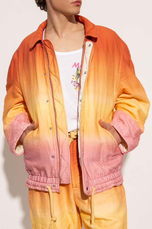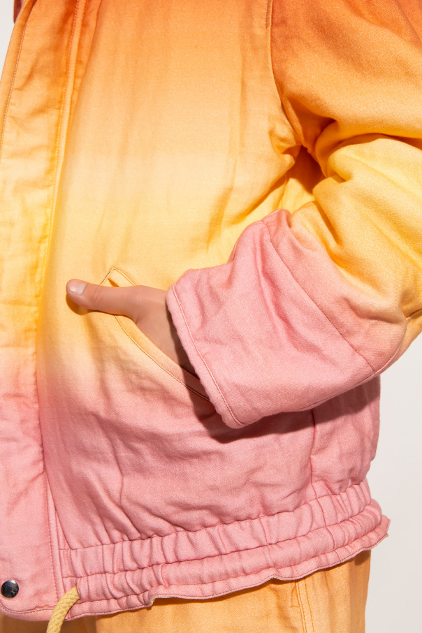 Orange, yellow and pink ‘Kisteytd’ jacket from Isabel Marant. Crafted from a cotton and linen blend with an oversize silhouette, this style features a gradient tie-dye effect, a zip fastening accompanied by pleats with snaps, two slip pockets, long sleeves and a drawcord-cinched hem.