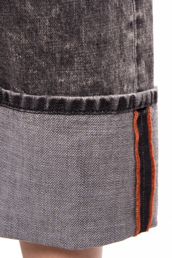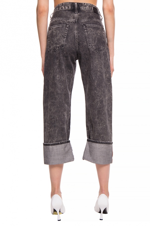 Black and grey high-waisted ‘D-Reggy’ jeans from Diesel. Zip and button fastening. 3 pockets on the front. Two slip pockets at the back. Straight, turn-up, 3/4 length legs.