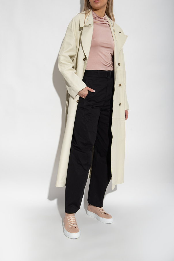 Beige ‘Tournament Low Classic’ sneakers from Common Projects. Made of leather, this lace-up model sits on a white rubber and showcases a signature gold-tone serial number stamped on the side.