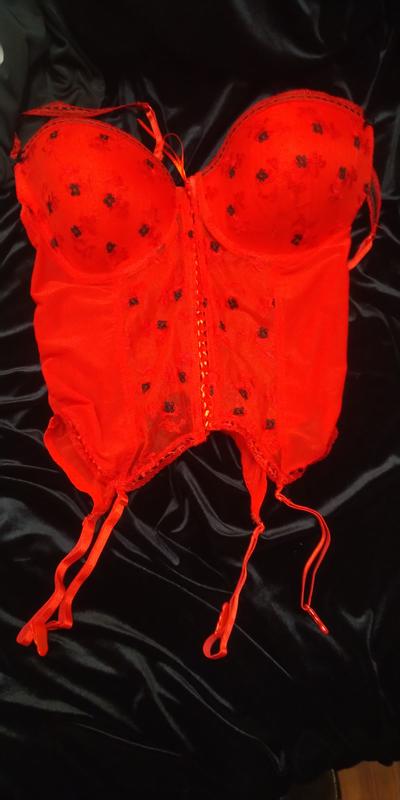 яркий и интригующий бюстгальтер-корсет с подвязками для чулок. Без застёжки. Впереди шнуровка лентой. Съёмные бретели Размер 80 С. Бирка срезана. Состояние идеальное.