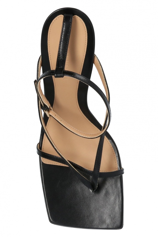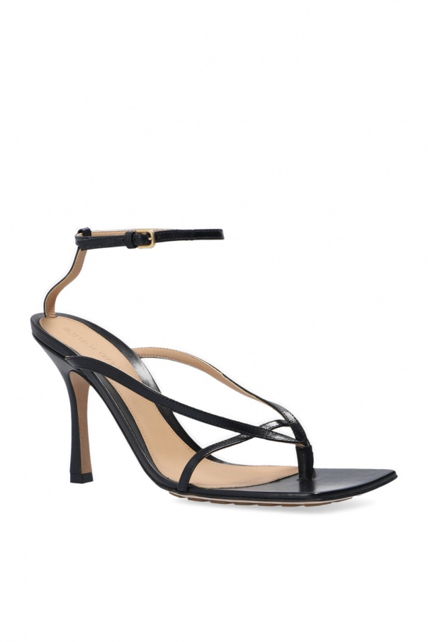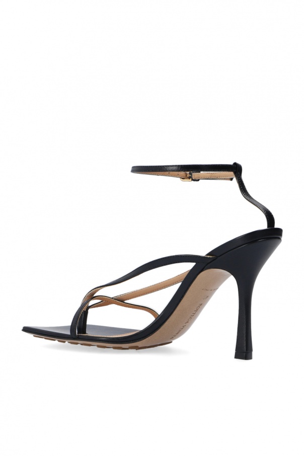 Black ‘Stretch’ heeled sandals from Bottega Veneta. Crafted from lamb leather, this pair is set on a rubber-injected leather outsole and features buckle strap closing at the ankle.