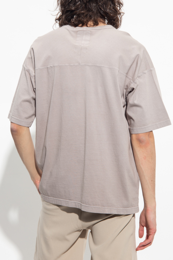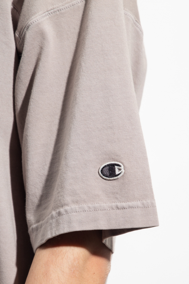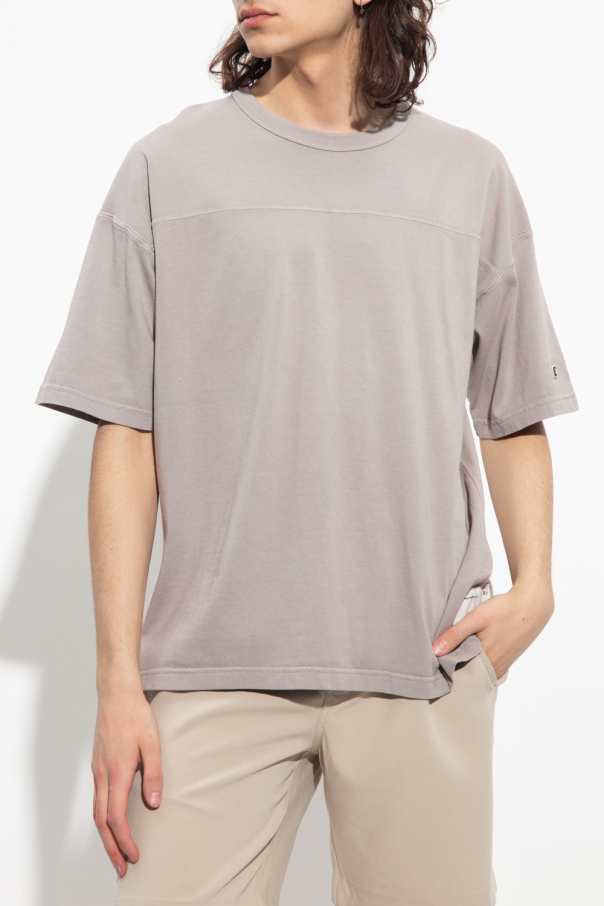 Greyish beige T-shirt from Champion. Crafted from organic cotton, this loose-fitting garment features a sleeve patch with a Champion 1919 patch, short sleeves and a ribbed crew neck.