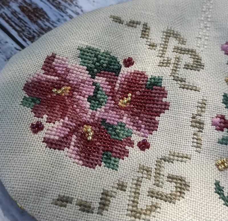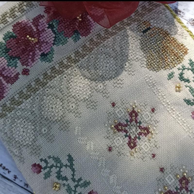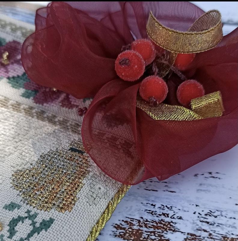 Рождественский Чобиток вышит на льне, бочками DMC,Kreinik,бисер Toho, крестиком и декоративными швами, украшенный бантом из органзы,декоративным шнуром. Собран вручную, без швейной машинки!!!! 42/16 см