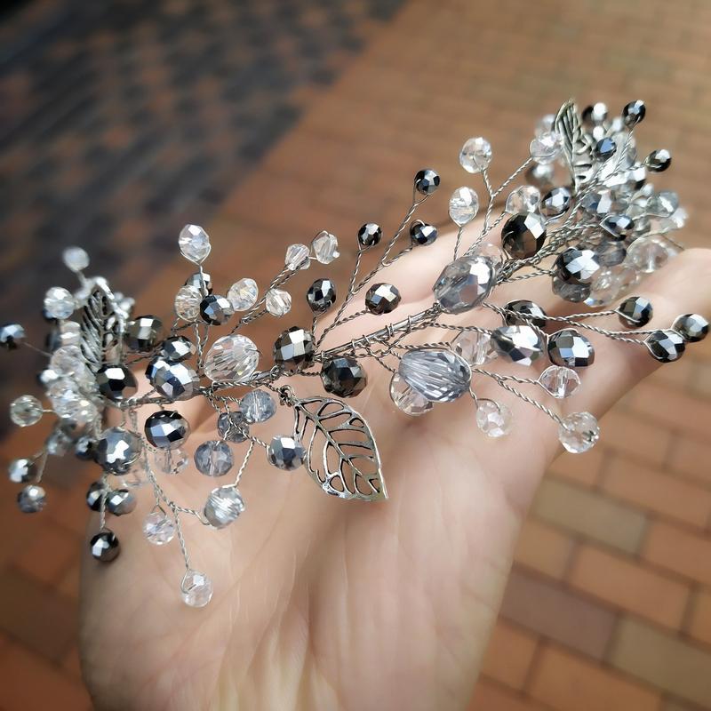 Создан с хрустальных бусин, металлических листочков и ювелирной проволоки. Для полного комплекта могу создать серьги и браслет. Возможен в другом цвете)