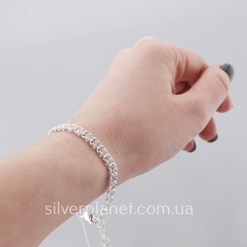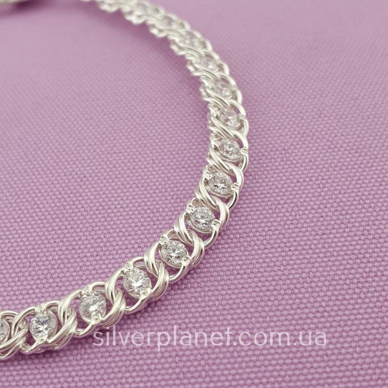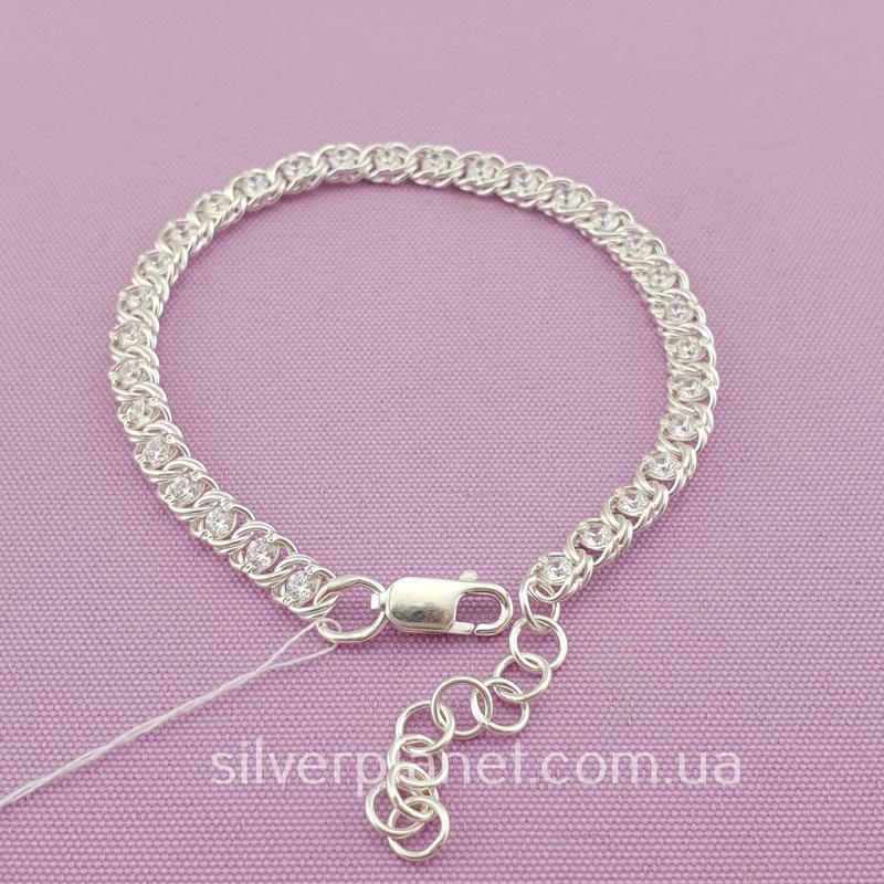 Серебряный браслет женский с фианитами (кубический цирконий) арабка.