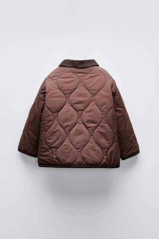 Куртка з сорочковим коміром і довгими рукавами. Застібається на кнопки спереду. Накладні кишені спереду. Окантовка і контрастна вельветова окантовка на комірі.