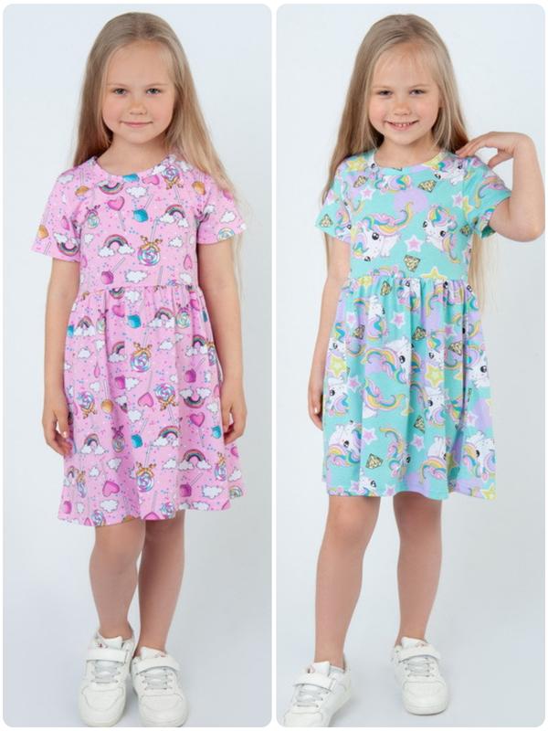 Красивое, комфортное платье для девочки на каждый день. Платье обязательно порадует вашего ребенка, ведь пошитое он из качественного и мягкого трикотажного полотна "кулир". Короткий рукав и присборенная юбка, делают эту модель детского платья - универсальной и удобной.
