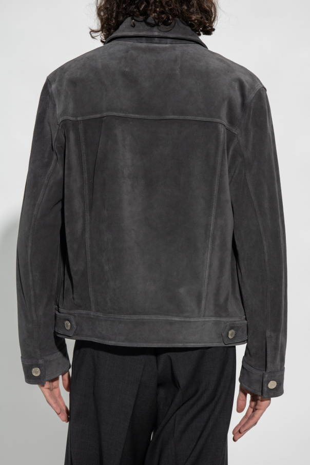 Dark grey jacket from Ami Alexandre Mattiussi. Made of suede, this style features button fastenings, four frontal pockets and long sleeves with button cuffs.