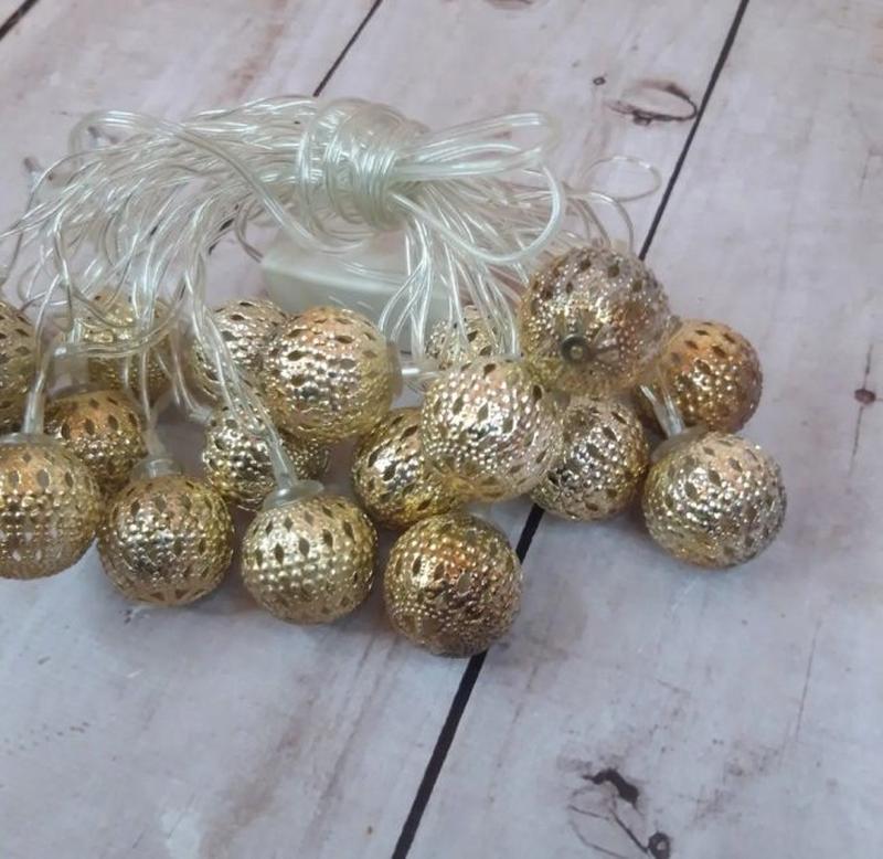 Гирлянда Металлические золотые шарики 3м 20LED Теплый белый, в коробке. От розетки, в рабочем состоянии.