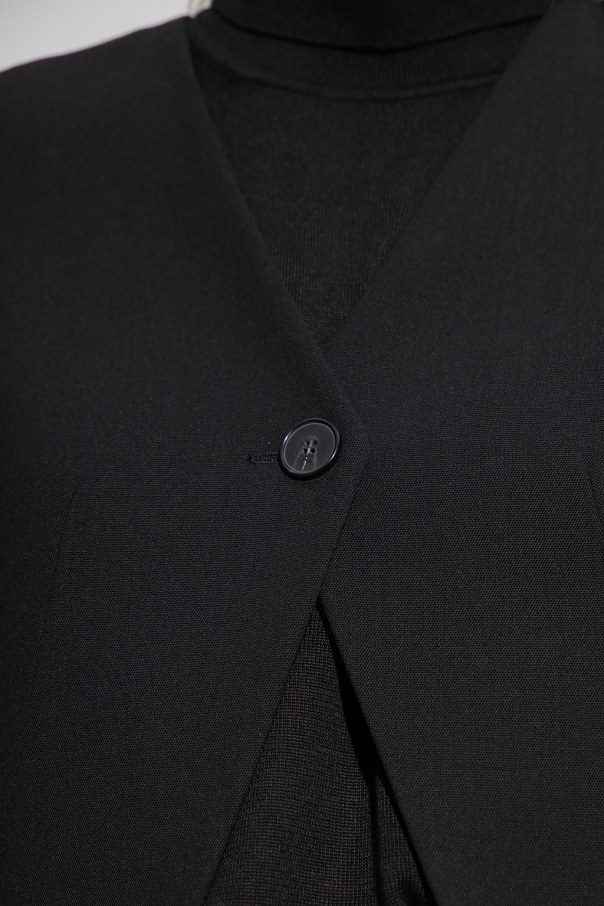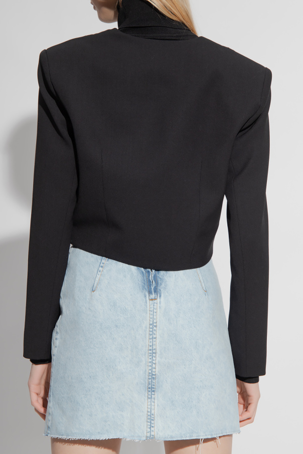 Black cropped blazer from Iro. Made of wool, this long sleeve design features button fastenings, two slip pockets and padded shoulders.
