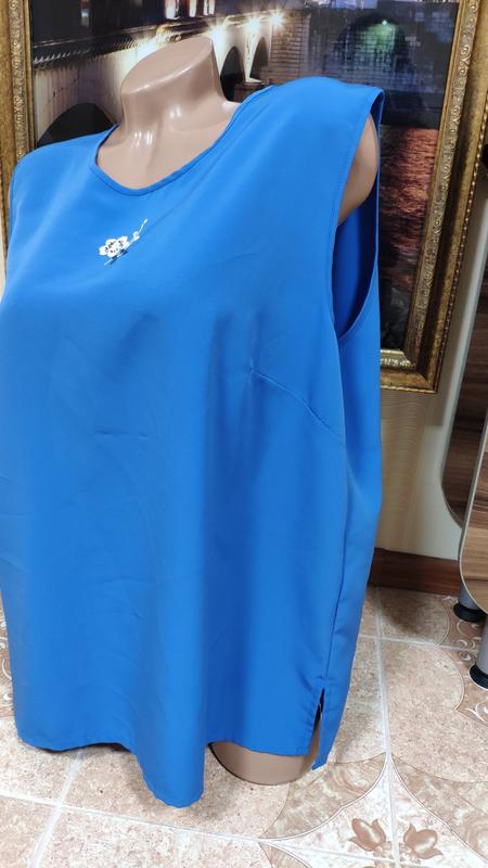 красивая блуза ,майка , необыкновенно красивый синий цвет,ткань приятная к телу, .шелковистая.размер указан украинский 20.