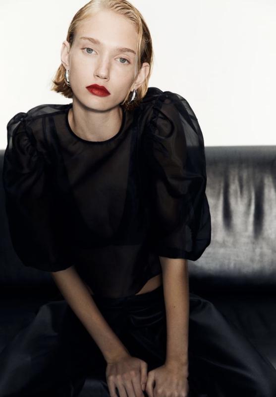 Крутой прозрачный топ из органзы с рукавами фонариками