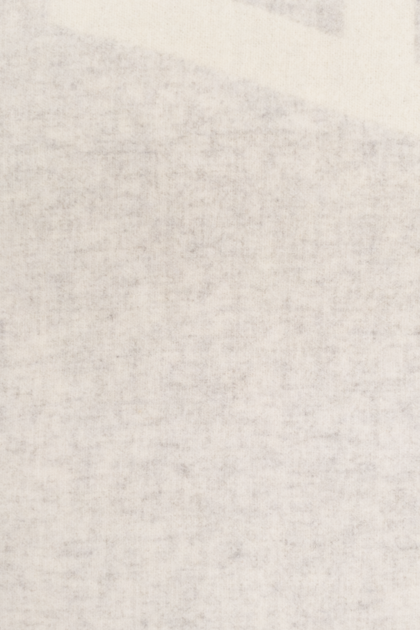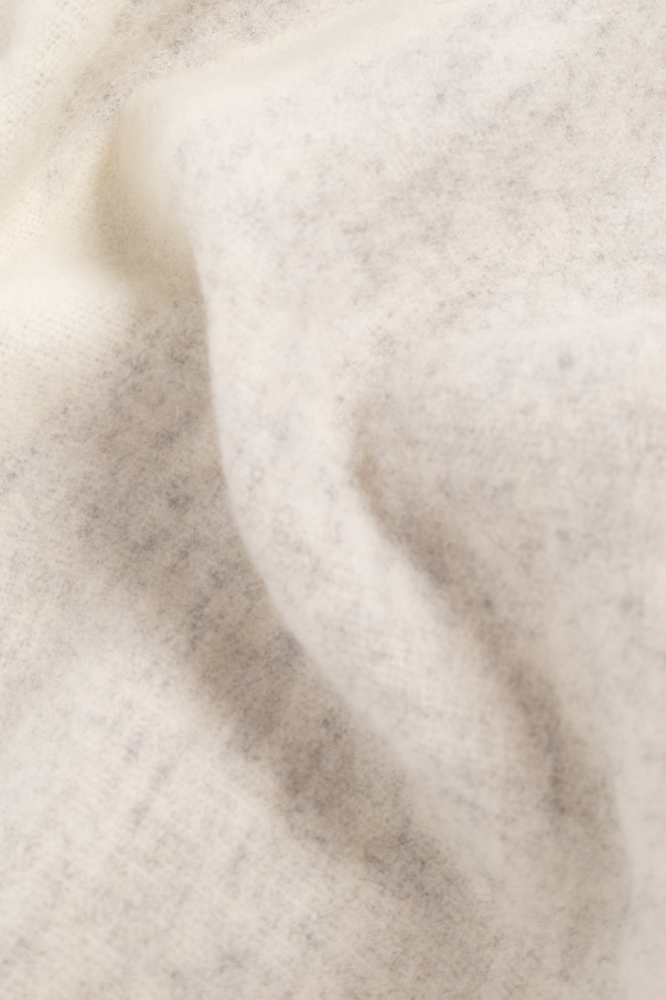 Grey and cream scarf from Acne Studios. Made from a wool blend, this item showcases the brand's logo and frayed ends.
