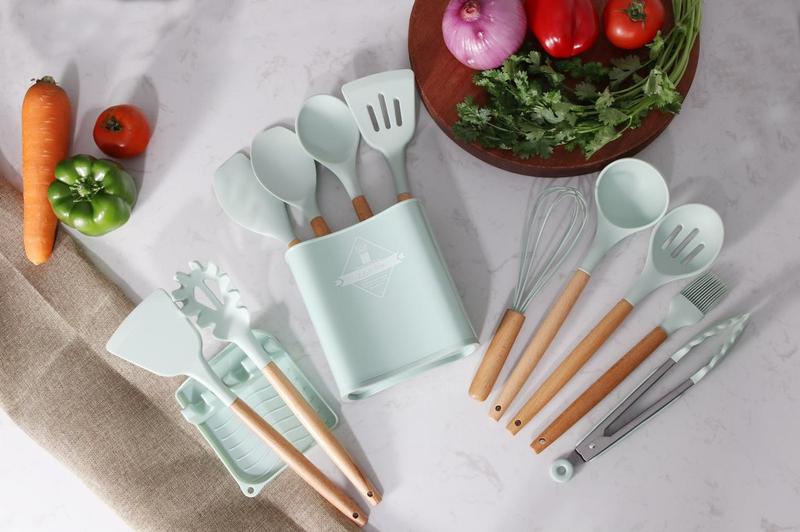 Бирюзовый Кухонный набор, кухонная утварь, силикон (12 предметов) ZP