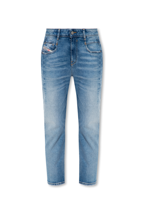Blue ‘D-FAYZA’ jeans from Diesel. Made of cotton, this mid rise pair features a zip and button fastening, distressed and vintage effect, five slip pockets, logo patch at the back and slightly tapered legs.