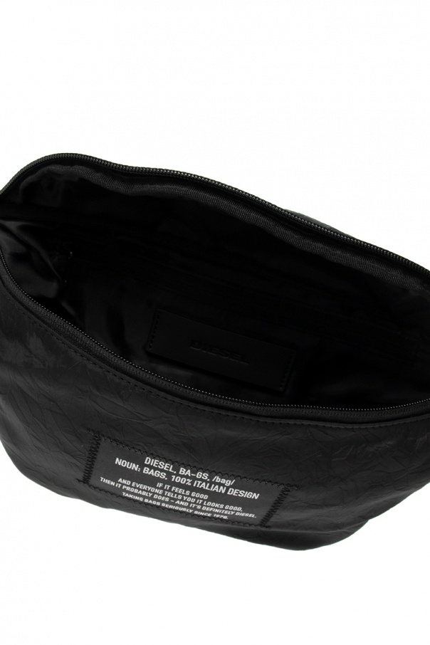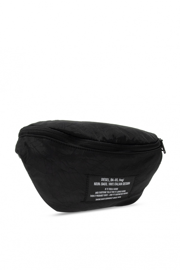 Black 'F-Suse' belt bag from Diesel. Featuring a white logo patch for the brand recognition, this style fastens via two-way zip closure and employs an adjustable strap and interior with one compartment and one zip pocket.