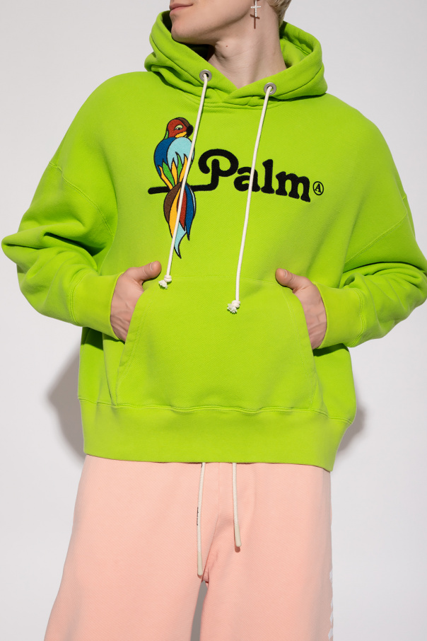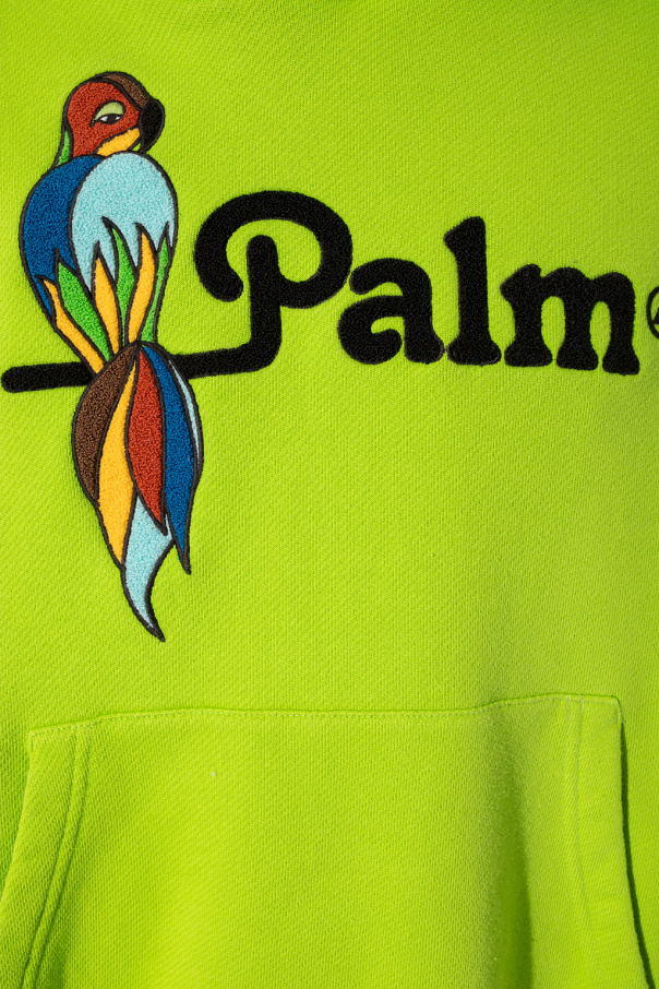Green crewneck sweatshirt from Palm Angels. Made of cotton, this style showcases a colourful logo graphic and a white fluffy logo appliqué. It is complete with ribbed trims on the collar, bottom hem and cuffs.