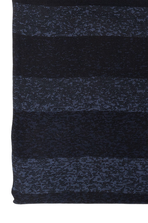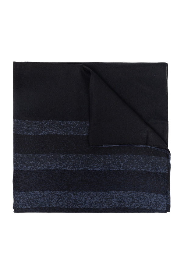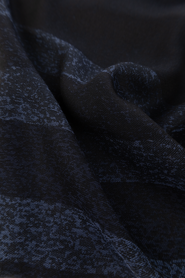 Navy scarf from Emporio Armani. Made of soft modal, this item is enriched by a logo and fringe edges.