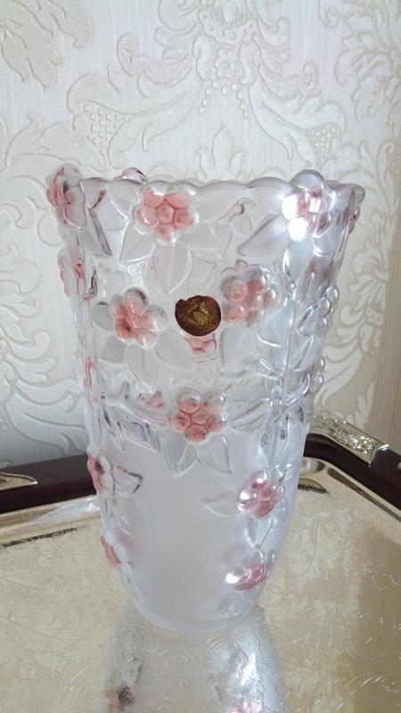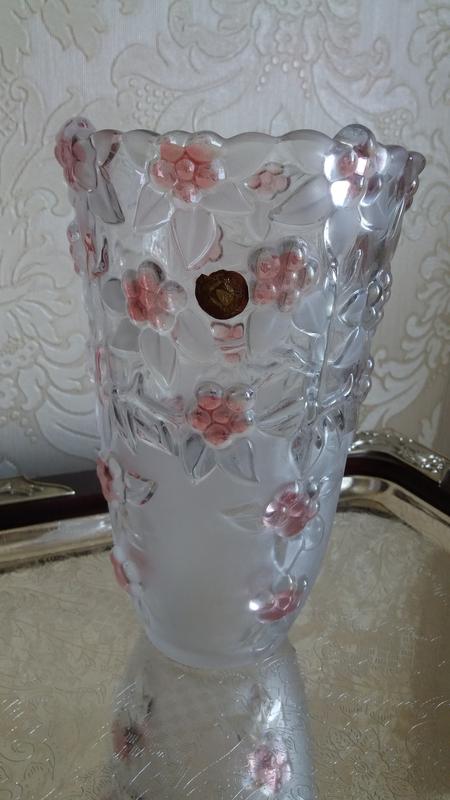 Высокая стеклянная вазочка с розочками высотой 24 см.