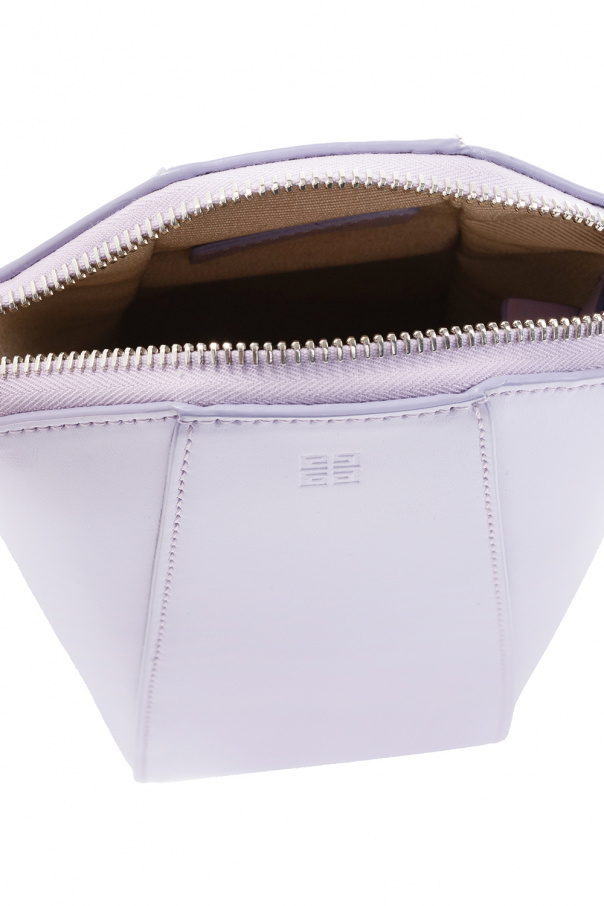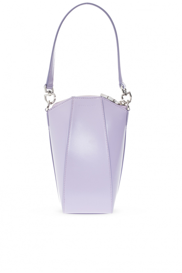 Light purple ‘Antigona Mini’ shoulder bag from Givenchy. Crafted from calf leather, this model fastens with a zip and is enriched by an embossed logo. It is complete with a half-round handle, detachable shoulder strap with chain inserts, fabric lining, one internal compartment and silver-tone metal hardware.
