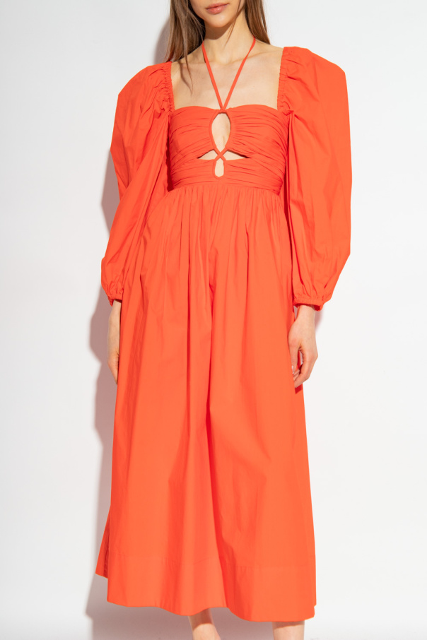 Orange ‘Alessa’ dress from Ulla Johnson. Crafted from cotton with a form-fitting silhouette, this style fastens with a hidden back zipper and hook & eye closure and showcases a drawstring fastening, long puff sleeves with elasticated cuff and a flared hem with two slip pockets.