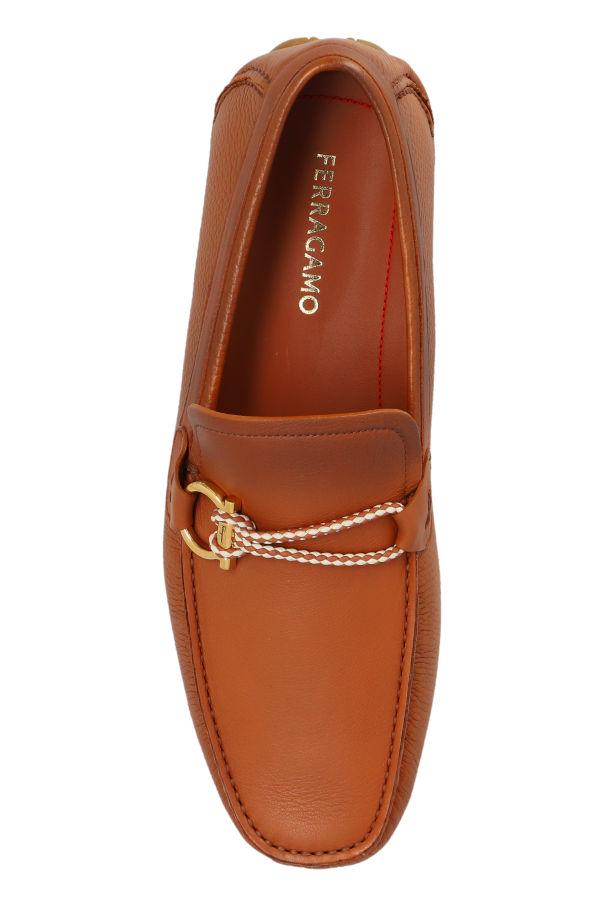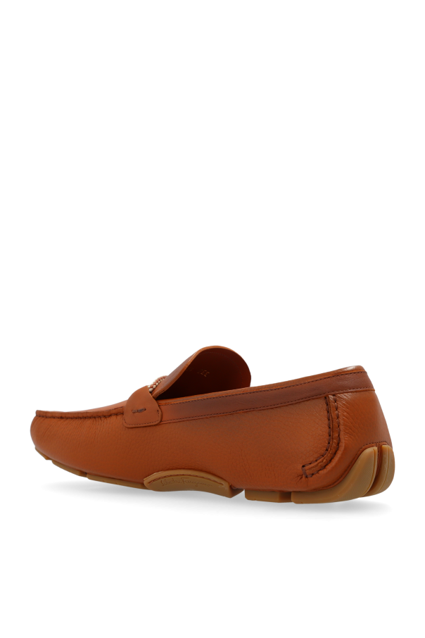 Discover the epitome of sophistication with the Moccasins 'Front' from the esteemed designer Ferragamo. These exclusive men's moccasins exemplify timeless elegance and superior craftsmanship. Crafted from premium calf leather in a rich cognac brown hue, these shoes boast a smooth texture with subtle grain details. The classic design features a rounded front, adorned with a distinctive golden chain accentuated by white highlights. Intricate stitching along the edges enhances the refined aesthetic, while a discreet logo graces the side of the shoe. The interior is luxuriously lined with brown leather, ensuring unparalleled comfort. The insole, marked with the designer's name Ferragamo, features the 'Extrawide' design for added ease. The brown rubber sole is meticulously engineered for optimal grip and comfort, making these moccasins as functional as they are stylish. Presented in various angles, including side, front, top, and on-model views, these moccasins provide a comprehensive visual delight of their exquisite design and superior craftsmanship. As a part of an exclusive collection, they epitomize high-quality workmanship and attention to detail. Why Choose This Product? Timeless and elegant design with a classic rounded front. Premium calf leather with a smooth, subtly grained texture. Distinctive golden chain with white accents for a unique touch. Luxurious leather lining and 'Extrawide' insole for superior comfort. Durable brown rubber sole designed for excellent grip and comfort.