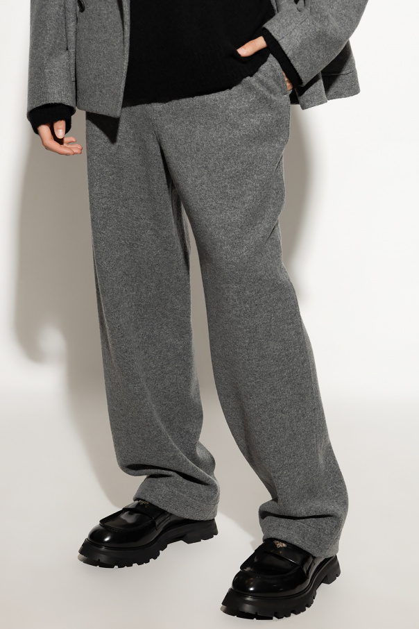 Grey trousers from Loewe. Crafted from wool, this pair is complete with buttons, drawstrings and three slip pockets.