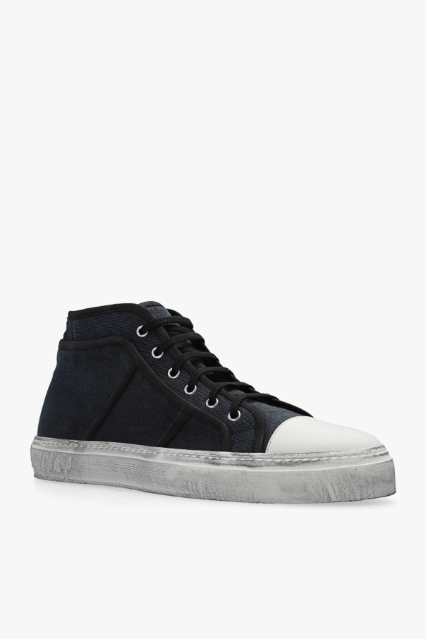 Navy and black high-top sneakers from Dolce & Gabbana. Made of fabric, this lace-up pair features a ‘Re -Edition’ charm, vintage effect and white rubber sole.