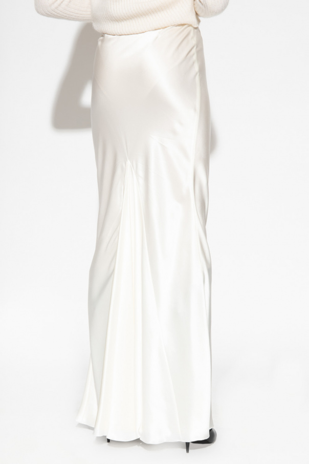 Cream skirt from Saint Laurent. Made of silk, this style features a side zipper with a hook & eye closure and a distinctive fishtail insert at the back.