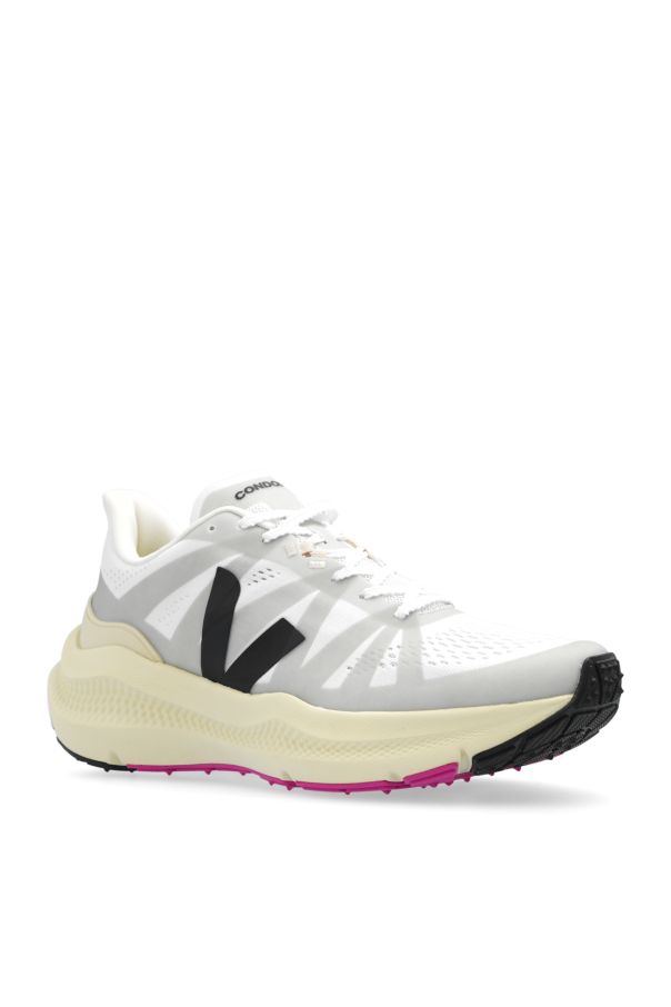 Introducing the 'Condor 3 Engineered-Mesh Cdr' from Veja, a quintessence of elegance, innovation, and ethical fashion for the discerning woman. Crafted with meticulous attention to detail, these sneakers embody a harmonious blend of style and functionality, designed to elevate your athletic endeavors and daily wear alike. The dominant grey hue of the sneakers is tastefully accentuated with splashes of white, black, and subtle pink inserts on the outer sole, creating an aesthetically pleasing palette that complements any attire. The engineered mesh upper not only lends the sneakers an air of sophistication but also ensures optimal breathability and lightweight comfort, making them an ideal choice for active lifestyles. These sneakers are distinguished by their iconic "V" logo on the sides, a testament to Veja's commitment to quality and brand identity. The higher profile sole, featuring latex L-Foam cushioning, promises unparalleled amortization, enhancing your stride with every step. Inside, the sneaker surprises with a light-yellow lining and insole, crafted from sugar cane, Amazonian rubber, and recycled polyester, offering a striking contrast and a testament to Veja's dedication to sustainability. Why purchase this product? Exquisite design: Aesthetic appeal with functional elements perfect for both athletic and casual wear. Eco-friendly materials: Made from recycled materials, including a sugarcane, Amazonian rubber, and recycled polyester insole. Superior comfort: Engineered mesh for breathability and latex L-Foam cushioning for ultimate comfort. Recognized excellence: Awarded Product of the Year in the Running Equipment category at ISPO 2020.