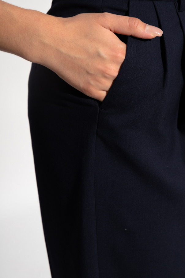 Navy blue pleat-front trousers from See by Chloé. Falling down with straight legs, this pair features a zip fly with a hook & eye closure, two side seam pockets and two back button pockets.
