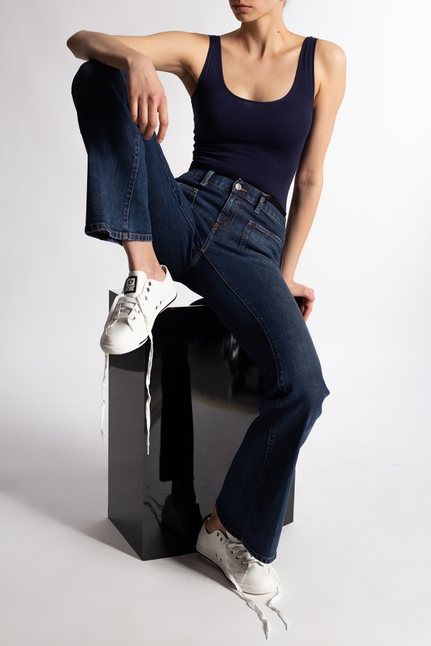 Blue ‘D-Ebbey’ jeans from Diesel. Crafted from stretchy cotton denim with a low waist and flared legs, this pair features a zip fly with a button, and four pockets.