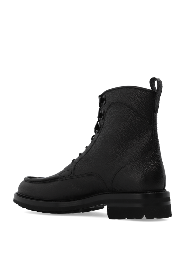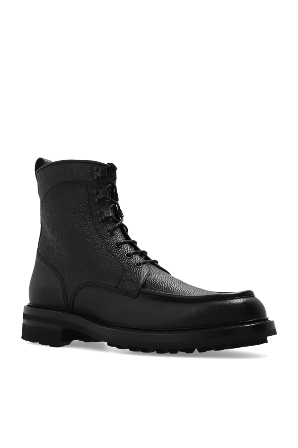 Black lace-up ankle boots from Brioni. Made of leather, this pair features decorative stitching and a black rubber sole.