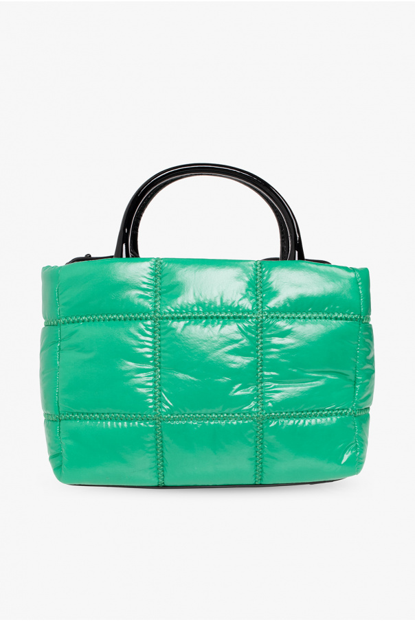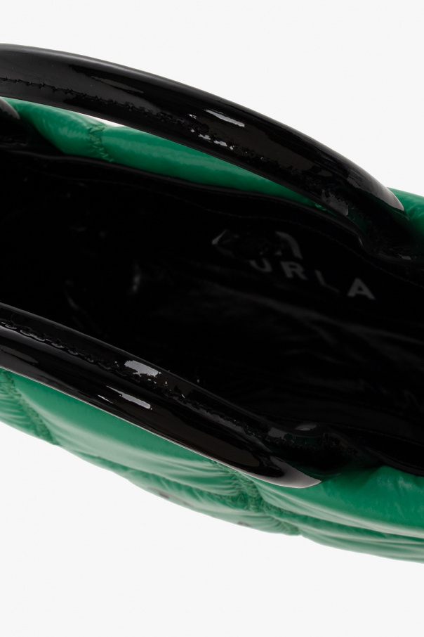 Green and black ‘Opportunity Mini’ quilted shopper bag from Furla. Crafted from fabric with a gloss finish, this model features a carabiner hook, black logo print, two half-round handles, detachable shoulder strap and one internal compartment with one slip pocket and one zip pocket.
