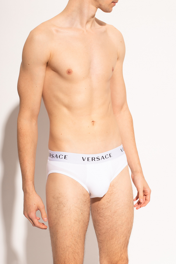 3-pack of briefs in white, black and grey from Versace. Crafted from cotton, this design features an elastic waistband with a logo detail.