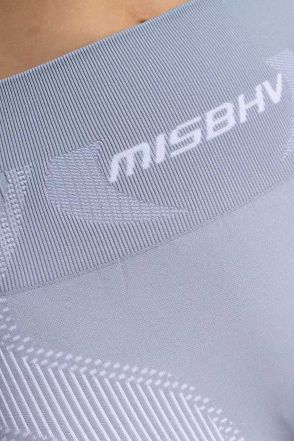 Grey and white shorts from MISBHV. Crafted from breathable thermo-active fabric with a slim-fitting silhouette. 60% of the yarn is recycled. This style showcases an elasticated waistband and an embroidered logo in white. This product was made in Poland with the use of 100% energy from solar panels, to reduce negative impact on our environment.