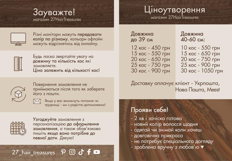 Виплітаємо косички на Ваше замовлення в різній довжині ( від 30 до 60 см) і кількості кос (12-30 шт кінців).