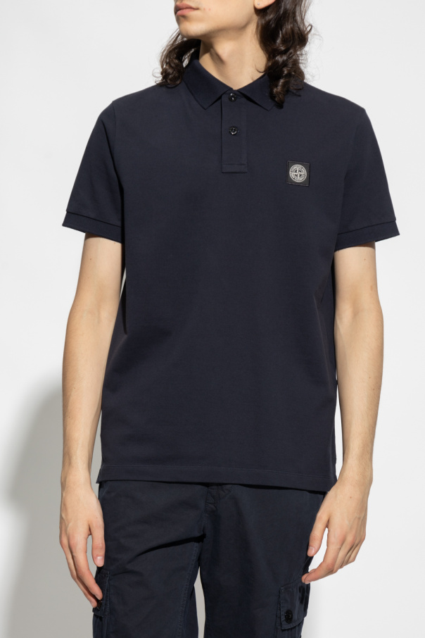 Navy polo shirt from Stone Island. Made of cotton, this garment features button fastenings and logo patch.