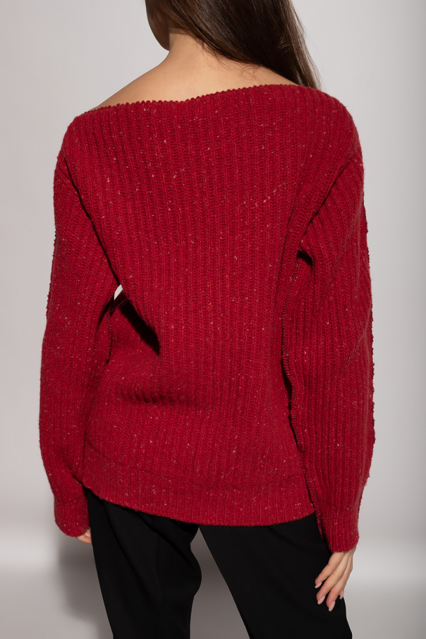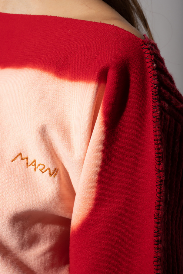 Cream and red sweatshirt from Marni. Crafted from cotton, this garment features an embroidered logo pattern, decorative stitching details, raw-trimmed neck and long sleeves with ribbed cuffs.