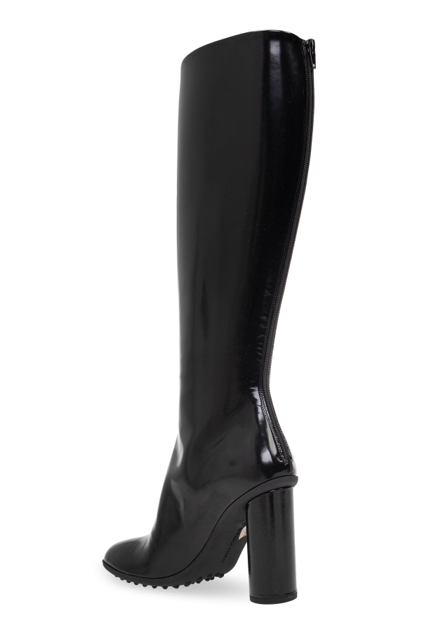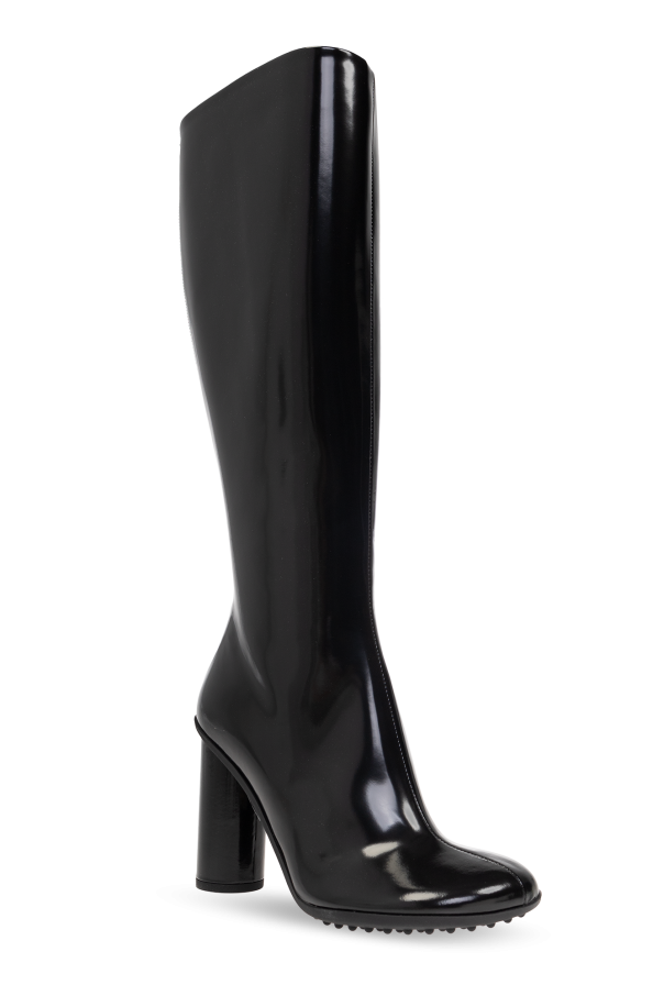 Black ‘Atomic’ heeled boots from Bottega Veneta. Made of smooth lamb leather, this pair fastens with a back zip.