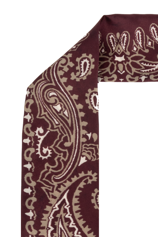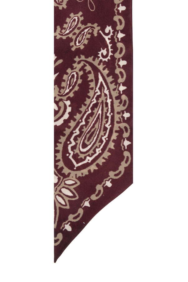 Introducing the Silk Scarf by Golden Goose, a quintessence of elegance and versatility. Crafted from 100% pure silk, this exquisite accessory is a testament to timeless style and luxury. Its elongated, narrow form offers endless possibilities for styling, making it a versatile addition to any wardrobe. The scarf features a rich Paisley pattern, an emblem of sophistication that adorns the fabric in a lighter shade, creating a stunning contrast against its brown backdrop. This intricate design not only exudes an air of exclusivity but also adds a layer of refined character to the piece. Meticulously finished edges and the high-quality material signify this scarf as a premium product, designed by the renowned fashion house, Golden Goose. Although the images shun the explicit display of logos, the style and craftsmanship speak volumes of its high-end lineage. The dominant brown color imbues the scarf with elegance and versatility, allowing for seamless pairing with a multitude of colors and styles. Whether draped over the shoulders or tied around the neck, it gracefully complements any outfit, from a light, patterned blouse to a cozy sweater. Why Purchase This Product? Made from 100% premium silk, promising unparalleled softness and sheen. Features a sophisticated Paisley design, a hallmark of high fashion. Offers versatile styling options, enhancing any outfit with its elegance. Designed by Golden Goose, a testament to quality and exclusivity. Its brown hue ensures easy pairing with a wide range of colors and ensembles.